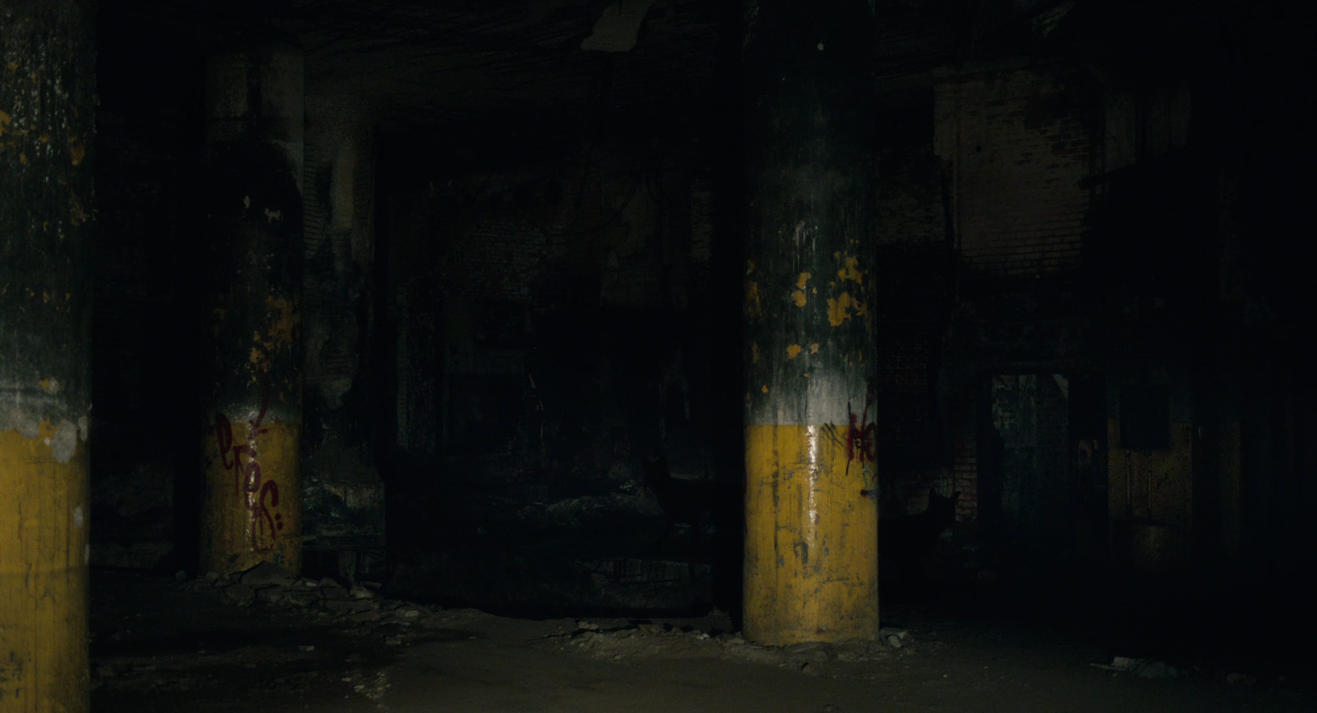 However, the two most strikingly gothic moments of Only Lovers Left Alive also have bizarre real-life parallels too, as recorded in Mark Binelli’s book The Last Days of Detroit, and both moments also exemplify how Jarmusch casts the city of Detroit in the gothic mould. When Adam and Eve go to dump Ian’s body in a pool of toxic waste in an abandoned car park, Eve comments on the Canis latrans, or Coyotes, that have been following them. Jarmusch frames the scene by having the pillars of the car park in the foreground, lit up; and then behind in the desolate shadow, the pinprick light of the coyotes’ eyes.