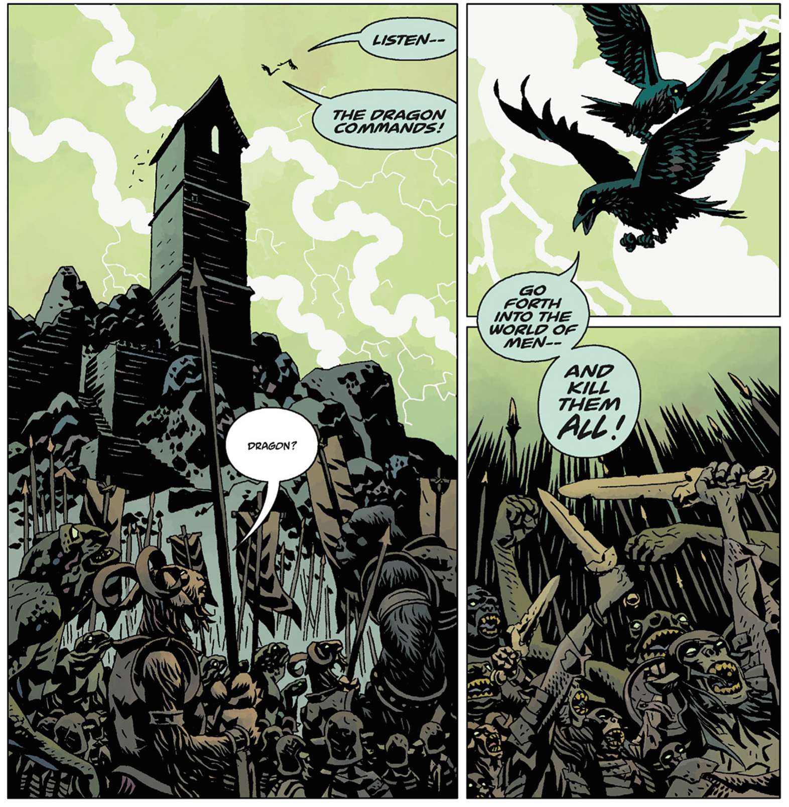Alright, so it might be cheating to include three stories as my number one pick for the Top 10 Hellboy Stories, but the three really do form a trilogy that acts as the closing of what is now being known as the first half of the Hellboy saga. Most people would balk at the thought of anyone but Mignola illustrating perhaps the most pivotal of Hellboy stories, but newcomer Ducan Fegredo is just as good an artist, and if anything I think these epic stories benefit from his more detailed, but not totally dissimilar style. Everything since Hellboy’s initial appearance in 1994 has been leading up to this: the Ogdru Jahad, Gruagach’s revenge, Hellboy’s ongoing feud with the Baba Yaga; it’s all been leading to these three stories as Hellboy must finally face his destiny as the Beast of the Apocalypse. The trilogy also doubles as perhaps the greatest modern fantasy epic, perfect for those who love The Lord of the Rings or A Wizard of Earthsea, only with a slightly more gothic tone. The story also benefits from being stretched out over three parts, as Hellboy and his true love Alice Monaghan become more deeply portrayed. A comic that will fill you with all emotions, This trilogy is the most heart-stirring of all the Hellboy stories. It is without a doubt Mike Mignola’s greatest artistic achievement, and his magnum opus.