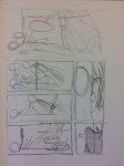 Before thumbnailing, I drew up a list of each page and what would occur on each. This was important so that I could keep the narrative moving forward and not finding myself lost in the atmosphere of each page, stalling the flow.